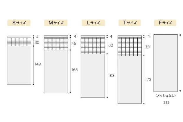- サイズ(SサイズかMサイズかLサイズかTサイズかFサイズ)を選択ください。