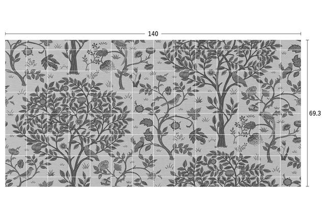 ウィリアム・モリスの次女メイが制作した、別荘「ケルムスコット・マナー」で使われていたベッド掛けをヒントに、刺繍で表現したデザインを織物にしました。