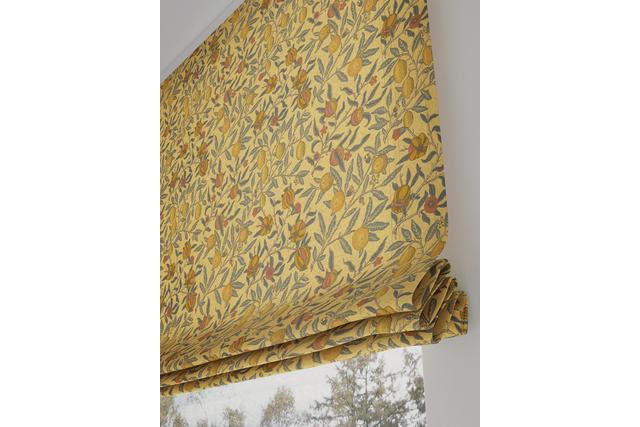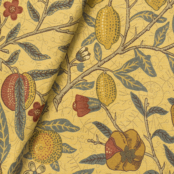 ウィリアム・モリスのデザインの中でも有名なこのフルーツの柄は、1864年にモリスが第二作目の壁紙として描いたもので、当時は版木を用いてハンドプリントされていました。