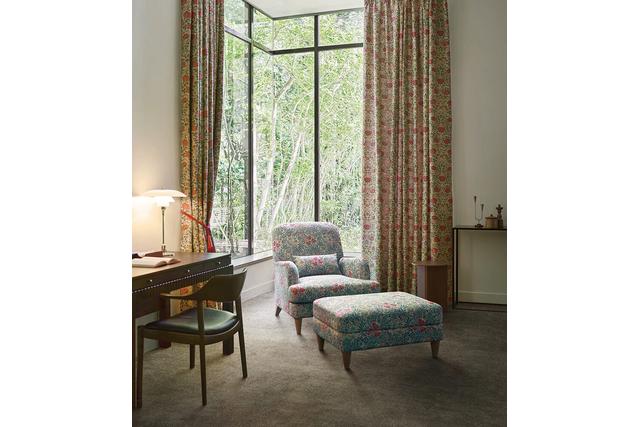 この柄は1883年、ウィリアム・モリスによって家具用ファブリックとして制作され、彼の親友であるエメリー・ウォーカー卿の居間にも用いられていました。