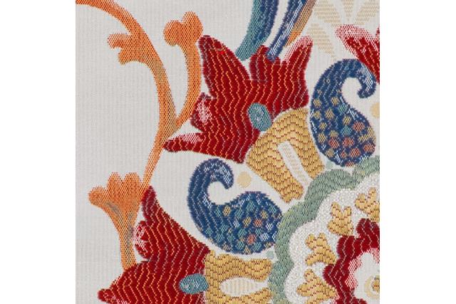 ラフなタッチのペイズリーを風通織で刺繍調に表現。
