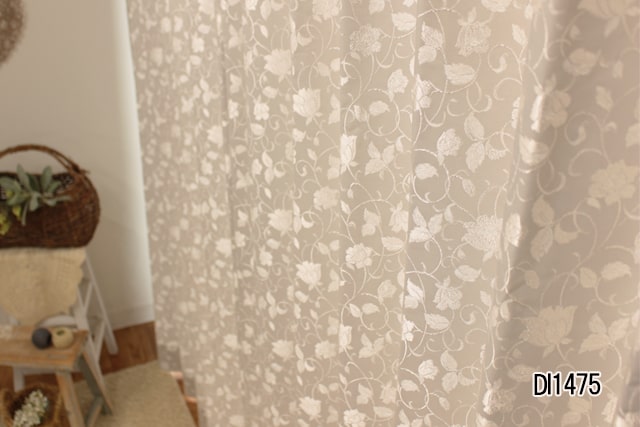 上品な光沢と繊細な花柄の刺繍のような織り柄が、窓辺をエレガントに彩り、光の当たり方で表情を変える上品な光沢感が、お部屋に華やかさを添えます。