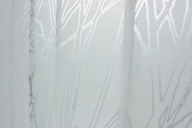 適度なハリがある生地です。見る角度や光の入り方によって、柄の立体感が強調されるレースカーテンです。